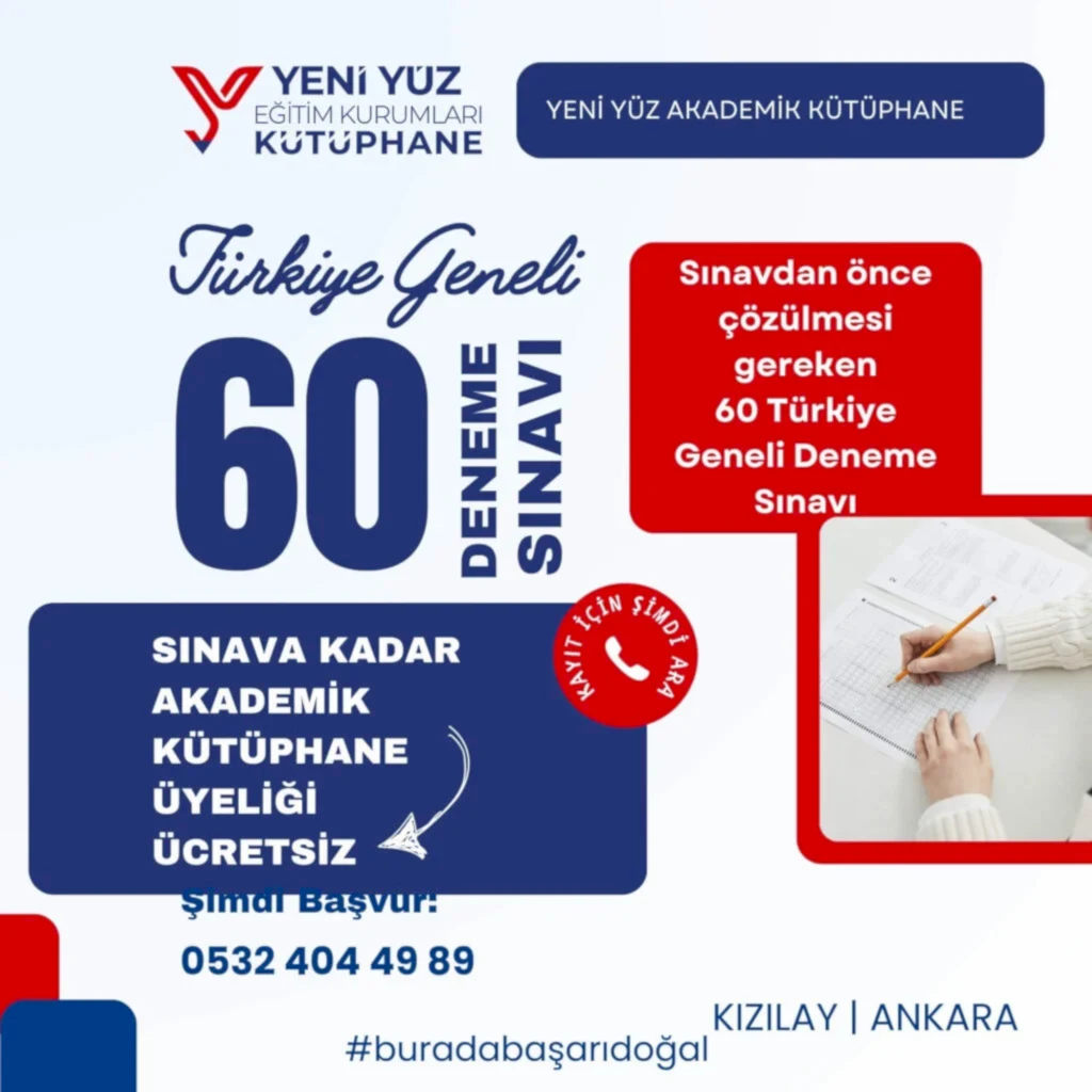 Sınavdan önce çözülmesi gereken 60 Türkiye Geneli Deneme Sınavı. Üstelik Sınava kadar Akademik Kütüphane Üyeliği HEDİYE!